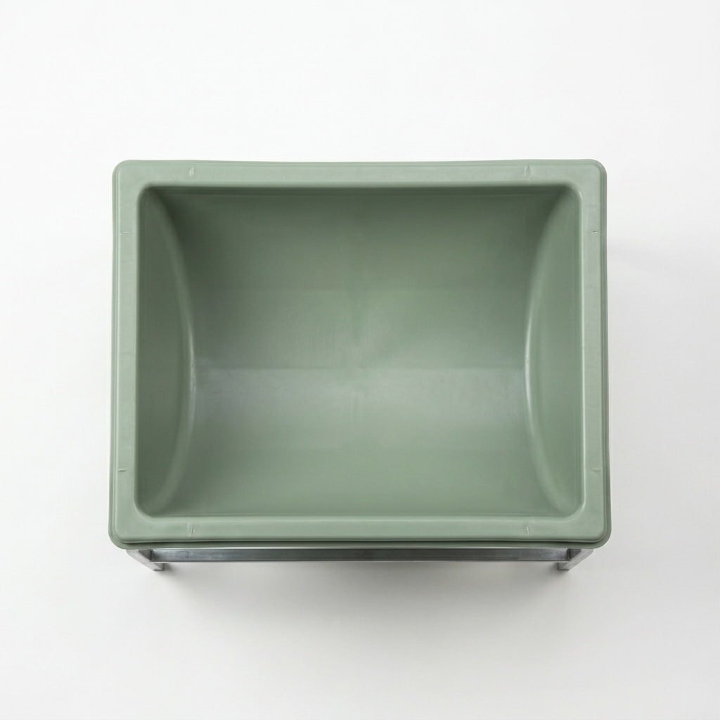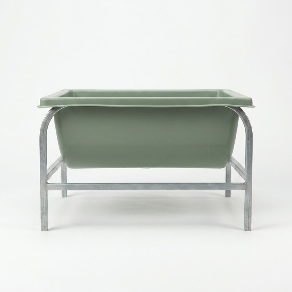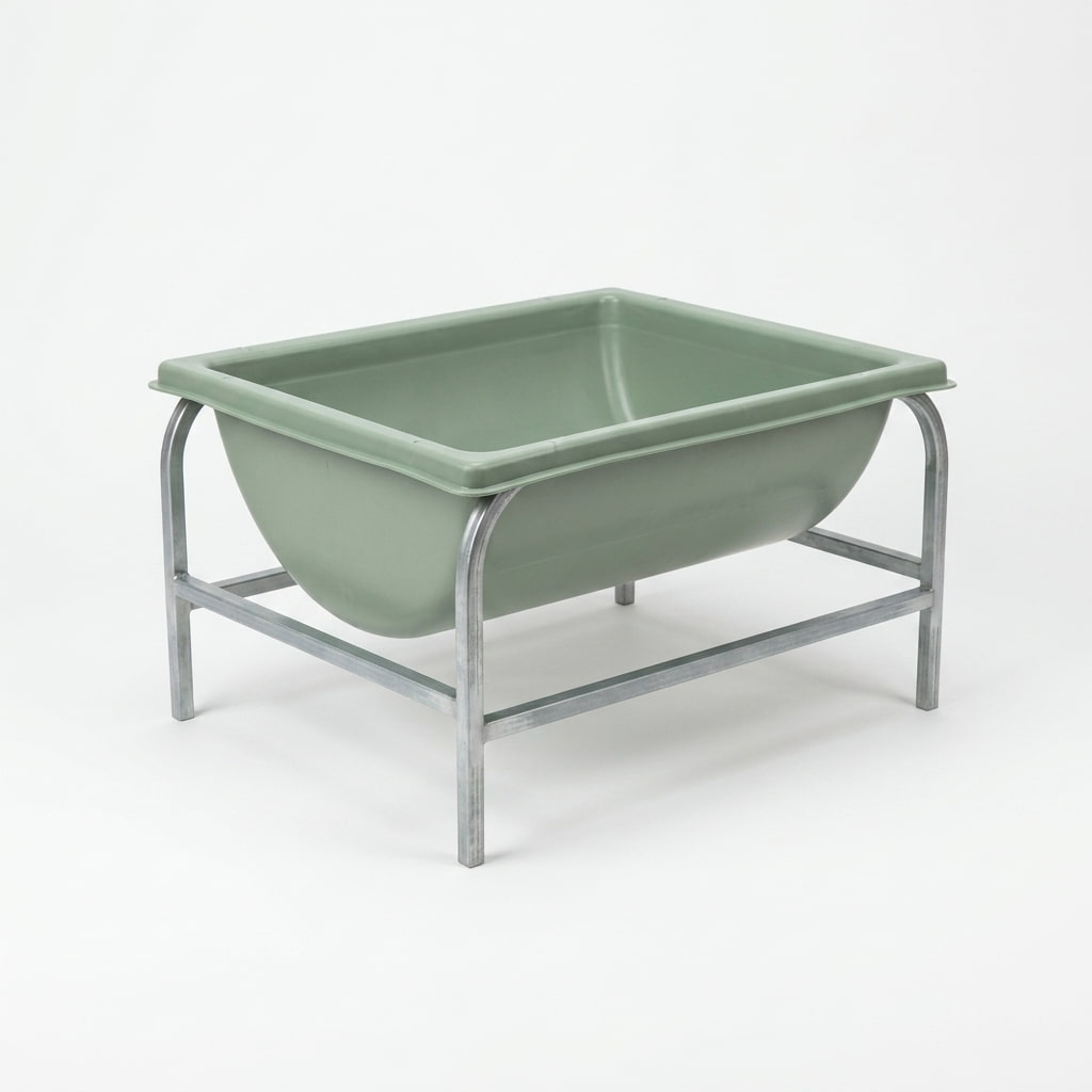 0.68 Meter Feed Trough .680mm feed trough on 310mm high galvanised stand, smooth poly finish for easy cleaning.